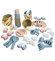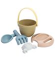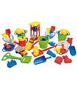 The Dantoy sand set consists of 38 parts. The beach set contains various buckets, cars, molds, and shovels. The beach set is perfect for a walk on the beach or in the sandbox and there are for many hours of play.