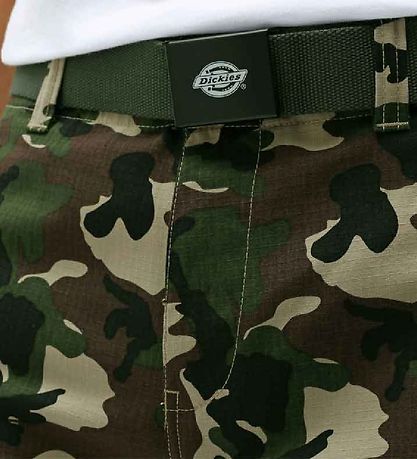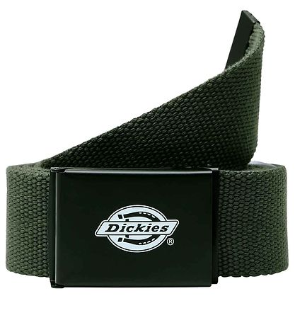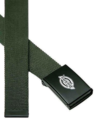 Cool Dickies belt in dark green. The belt buckle is black with a white logo.