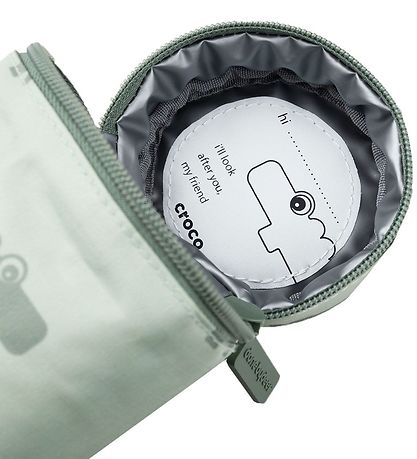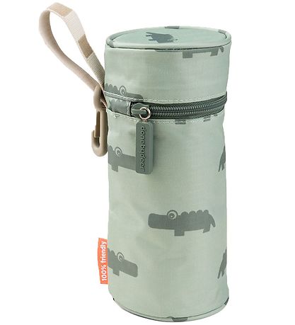 Beautiful Done by Deer bottle holder in green with an all-over-print of small, green crocodiles.