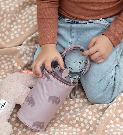 The Done by Deer bottle holder consists of a large compartment, which closes with a zipper at the top. Inside, it is well insulated, so the water can be kept cold for a longer time. It has a practical handle, so it is easy to carry around.
