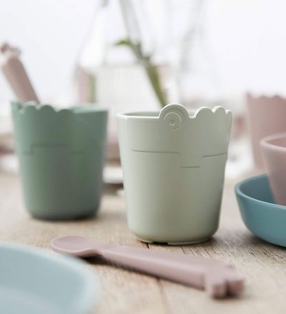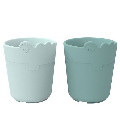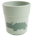 Lovely Done By Deer cup, sold in a 2-Pack in light blue and petrol blue, with the crocodile Croco on top.