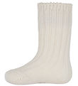 Lovely Fanga Fontana socks in a plain off white with a distinct ribbed structure. The Socks are a long model with a wide ribbed edge at the top, which ensures a good fit.