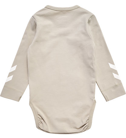 The Hummel bodysuit has long sleeves and a round neckline. It opens with practical push buttons on the left shoulder and between the legs, and there are narrow ribbed edges in the throat and the leg openings. The Bodysuit is in a comfortable and stretchable quality.