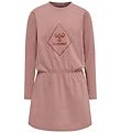 Adorable Hummel dress in dusty pink with an all-over-print of dandelions and a white logo print on the left chest.