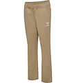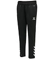 Beautiful Hummel trousers in pink with an embroidered logo in pink on the left thigh and Hummel shevrons along the outside of the legs in pink and glitter. The Trousers have a relaxed fit with wide legs and a wide elastic edge at the waist, which can be adjusted with buttons inside.