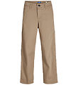 The Jack & Jones trousers have long legs with elastic edges and opens at the front with a button and zipper. At the waist, there is an adjustable elastic edge inside and practical belt straps on the outside. At the front there are two open pockets on the sides, with a little coin pocket on the right side and at the back there are two flap pockets which close with a decorative button in a wooden look. The Trousers are made in a soft and stretchable quality.