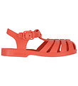 The Liewood sandals are in a closed model, and close with a velcro strap over the ankle. On the velcro strap is a decorative metal buckle, and across the toes there are three straps. The Sandals have a good heel support, and have a soft and comfortable insole.