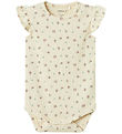 Beautiful Minymo bodysuit in white with all-over-print of branches in brown and green.