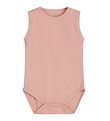 The Minymo bodysuit has wide shoulder straps and ribbed edges edges around all the openings. The Bodysuit is in a deliciously soft quality and is opens with practical push buttons, one at the left shoulder and three between the legs.
