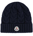 The Moncler beanie has a round head shape, and it closes in front of the chin with two push buttons. The Beanie consists of two layers, where the outer layer is made of warm and soft wool, while the inside is cotton in a knitted quality.