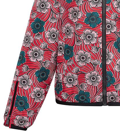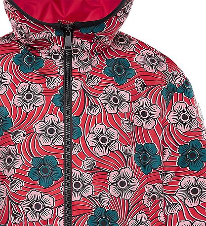 Nice Moncler jacket in red with large flowers in pink and dark green.