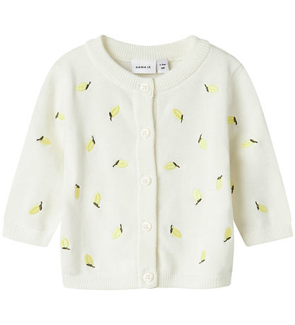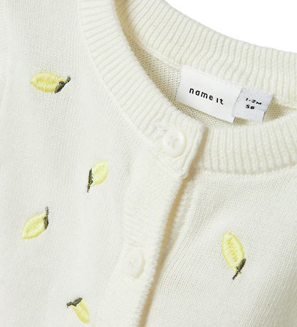 Adorable Name It cardigan in a light purple colour with small embroidered lemons on the sleeves and front.