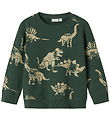 Attractive Name It sweatshirt in a deep green colour with an exciting dinosaur print. Name It has designed this sweatshirt with long sleeves and a round neckline, which contributes to a stylish and modern look. It is perfect for those who love dinosaur motifs.