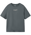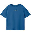 Nice Name It t-shirt with short sleeves in a nice blue shade with the text "Studio Edition" printed in white rubber on the front. The T-shirt has a round neckline with a narrow ribbed edge and short sleeves.