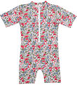 The Petit Crabe swimsuit has short sleeves and legs, and a high throat. The suit opens at the front with a zipper, with an internal wind pole, so it does not bother the skin.