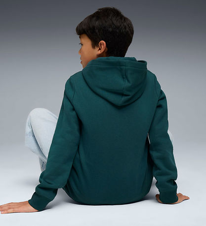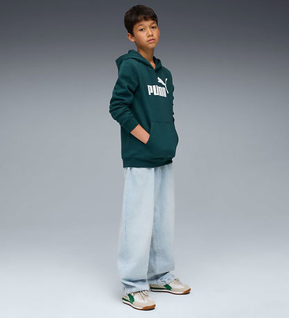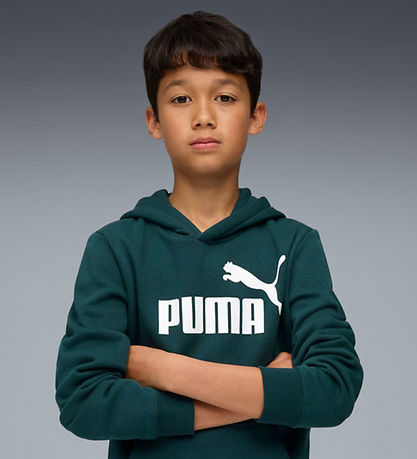 Cool Puma hoodie in dark green sweat with a large, white logo printed on the front. The Hoodie has a practical kangaroo pocket on the front and it has soft ribbed edges. The Hoodie has soft, brushed cotton on the inside.