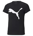 Smart Puma t-shirt in black with a large, white logo print on the front. The Puma t-shirt has a round neckline with a narrow ribbed edge and short sleeves.