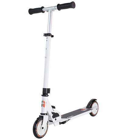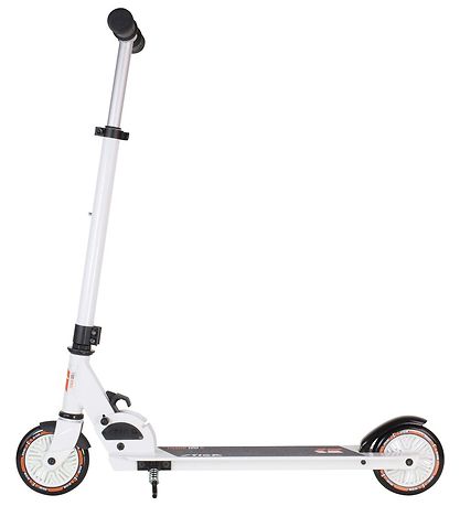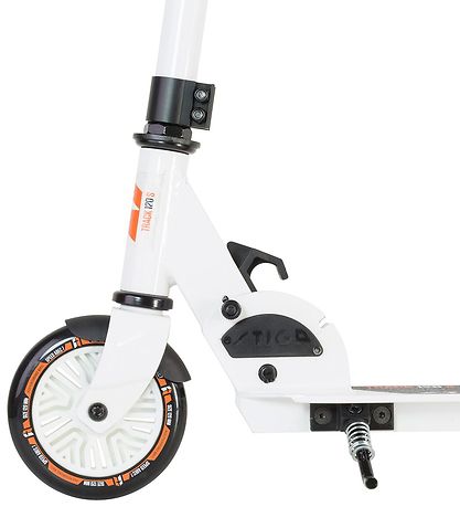 Smart Stiga scooter in a white aluminum/steel frame with orange details which can be folded.