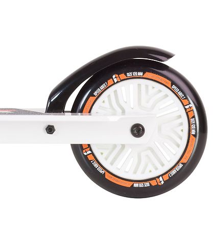 The handlebars on the Stiga scooter can be adjusted in height and come with good handles with TPE grips. The scooter has two 120 mm PU wheels with ABEC 7 ball bearings, and on the rear wheel there is a good brake.