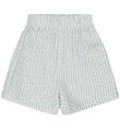 Nice That's Mine shorts with stripes in light blue and beige with an allover print with a run theme.