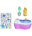 The Tiny Treasures doll lift has a square shape with light padding, where you can put your doll to sleep. The doll lift can be carried with two padded handles. A cushion for the doll is included with the doll lift.