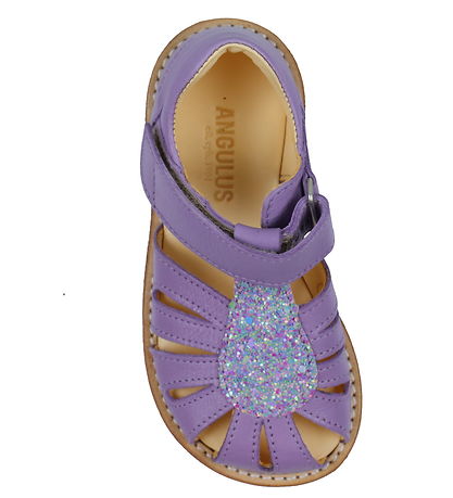 Sweet Angulus sandals in purple leather with fine multicolour glitter at the toes.