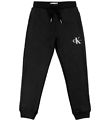 Stylish sweatpants from Calvin Klein in a dusty dark blue with the well-known Calvin Klein logo print in grey and white on the left thigh.
