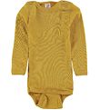 The Engel bodysuit has long sleeves and narrow ribbed edges, and it has a practical wrap design so that it can be opened all the way up the front. The Bodysuit closes down the left side with push buttons, and between the legs there are two push buttons. The Bodysuit is made in a soft and delicious mix of wool and silk