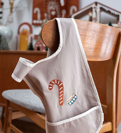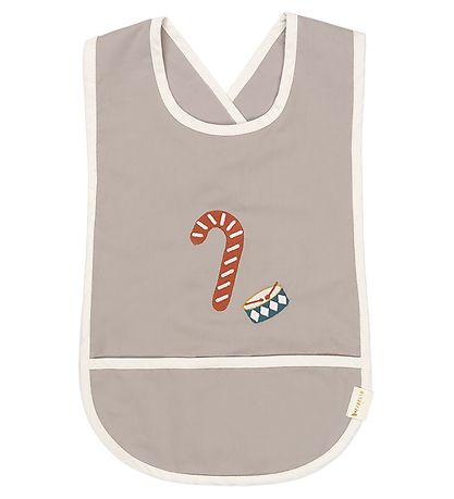 Cute Fabelab bib in brown with a red and white embroidered candy cane and with beige edges.