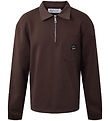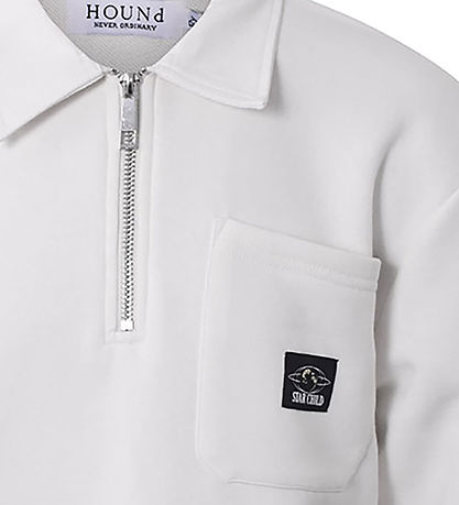 The Hound sweatshirt has long sleeves with wide ribbed edges, and in the neck opening it has a classic collar. The Sweatshirt opens at the front with a card zipper in the neck opening, and there is a breast pocket on the left side.