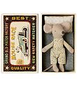 The Maileg rabbit can be played with like a little doll and its clothes can be taken on and off. Its body is filled with PP pellets, which gives it more weight.