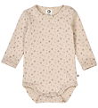 The Müsli bodysuit has long sleeves with narrow edges. Between the legs there are three push buttons. The Bodysuit opens with a push-botton on the left shoulder.
