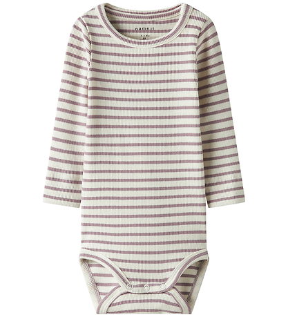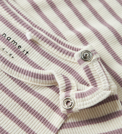 Beautiful Name It bodysuit with a comfortable rib structure and a classic striped design in white and purple.