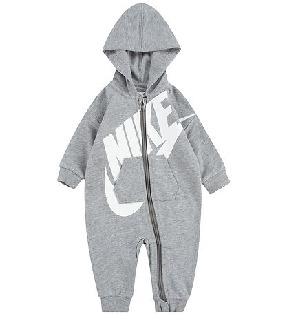Nice Nike jumpsuit in grey melange sweat, and on the front is a large, white logo print.
