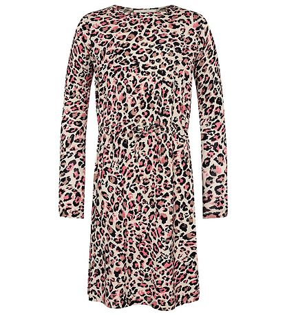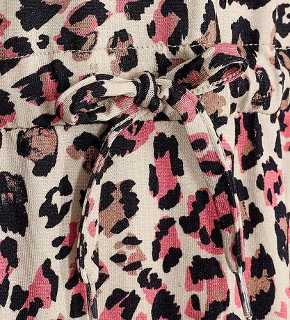 Fine Petit by Sofie Schnoor dress in beige with an all-over leopard print in black, brown and pink shades.