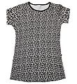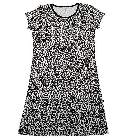 Beautiful Say-So nightdress in melange grey with an all-over leopard pattern in shades of grey and black and with an embroidered "S" in black on the lower left side.