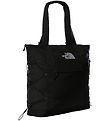 The North Face travel bag has a D-shaped opening with a zipper and a water repellent zipper flap. The travel bag consists of a large main compartment with an open mesh pocket on one side. The travel bag also has a practical mesh pocket with a zipper on the inside of the travel bag lid. On one side, there is an extra pocket for various small items.