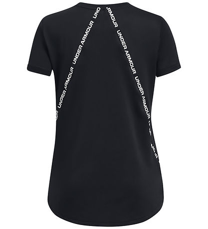 Nice Under Armour t-shirt in black, and on the back there are two black logo stripes with the name "Under Armour" in white.