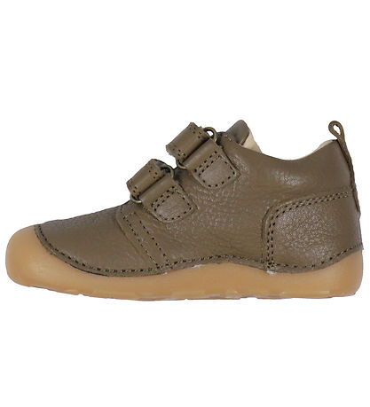 Bisgaard beginner shoes are closed with Velcro straps over the instep, so they can be easily and quickly adjusted to the kid's foot. The inside is light brown leather with extra padding around the opening, and at the bottom there are soft, removable insoles. The beginner shoes have a wide toe box, so there is room for the toes to move freely. The outsoles go up over the toe and heel, so the shoes are well protected against wear.