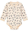 Fine CeLaVi bodysuit in pink powder with an all-over-print of hedgehog and mushrooms in dark brown, green and yellow.