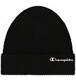 The Champion beanie consists of two layers of knitted and has a round head shape. At the top is a stitching cross, and the beanie also has a nice turn-up.
