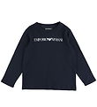 The Emporio Armani blouse has long sleeves and a narrow ribbing in the neckline.