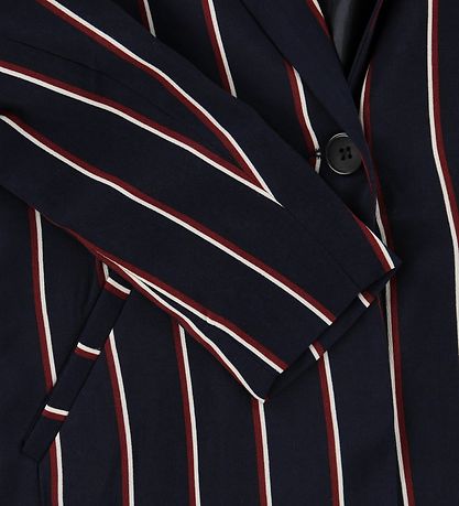 Adorable Grunt navy blazer with stripes in white and red.