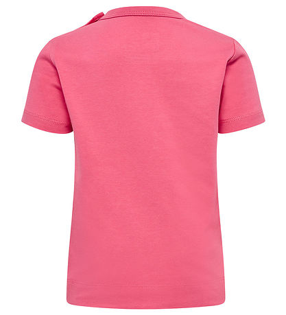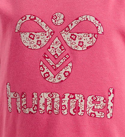 Nice Hummel t-shirt in pink, with a nice logo print on the chest in white with flowers in pink, green and blue.