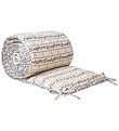 Elegant Konges Sløjd bed bumper in off white with small blue dots and floral prints in pink, orange and blue shades. The Konges Sløjd bed bumper is Fast to the inside of the cradle, cot or playpen with drawstring. It has soft polyester padding that protects the kid from hard edges and pull.