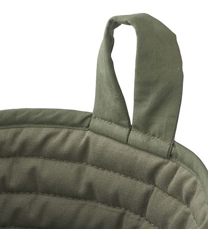 Practical Liewood storage screw in solid- plain dusty green with a quilted look with horizontal seams.