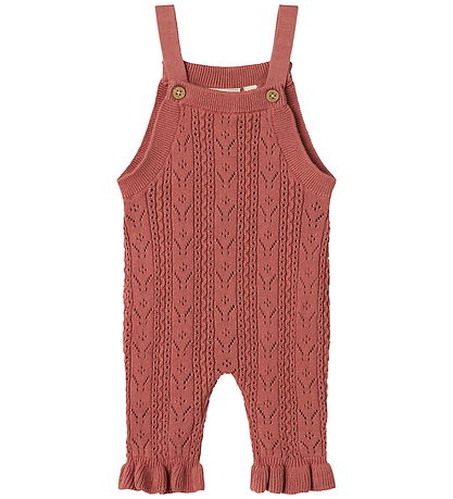 Elegant Lil' Atelier overalls in a warm pink shade in a beautiful patterned knit.