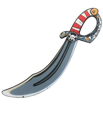 Cool Liontouch pirate sabre in grey, white and black. The shaft is red and white with a print of a skull.