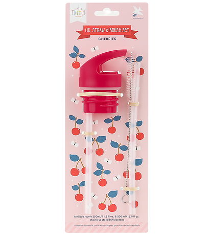 A Little Lovely Company drinking bottle set fits the brand's own stainless steel drinking bottles. The lid has a smart handle and a sports spout that can be folded up and down. The lid closes tightly thanks to a practical silicone edge. The cleaning brush is easy to use on the included straws.