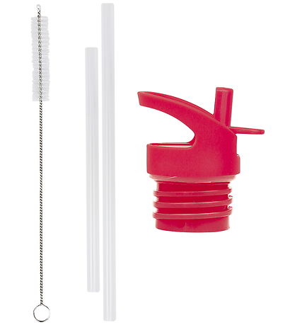 Practical A Little Lovely Company drinking bottle set consisting of a pink lid, two straws and a cleaning brush.